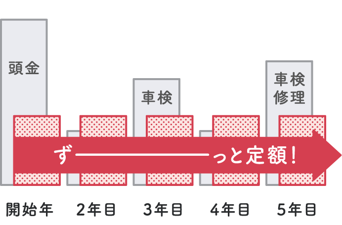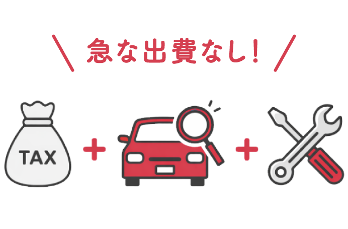 自動車税や車検、 メンテナンス費用がコミコミ(メンテナンスサービス付帯の場合) |